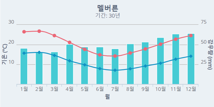 아래에서는 호주 멜버른의 월별 날씨 및 여행 시 옷차림에 대해 상세하게 알아보도록 하겠습니다.