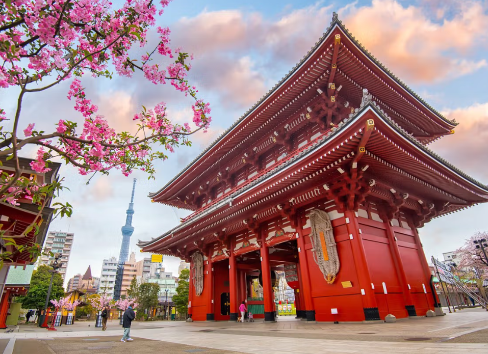 도쿄에서 가장 오래되고 유명한 사찰 중 하나로, ‘카미나리문(雷門)’을 지나 나카미세 거리(仲見世)에서 전통 기념품을 구경하며 본당까지 이어지는 접근 자체가 하나의 경험입니다.