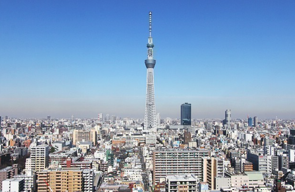 높이 약 634 m로 일본에서도 가장 높은 타워이며 전망대가 두 단계로 나뉘어 있어 각각 지상 약 350 m, 450 m에서 도쿄의 전경을 감상할 수 있습니다.