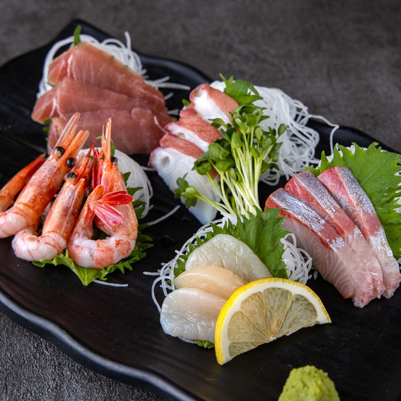 - 사시미 모둠: 2,500엔 - 신선한 회