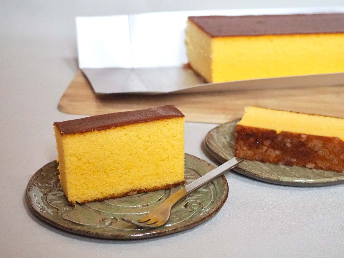 카스테라는 16세기 포르투갈에서 나가사키로 전해진 전통 과자예요. 계란, 설탕, 밀가루, 물엿으로 만든 단순한 재료지만, 400년 전통의 깊은 맛이 일품!