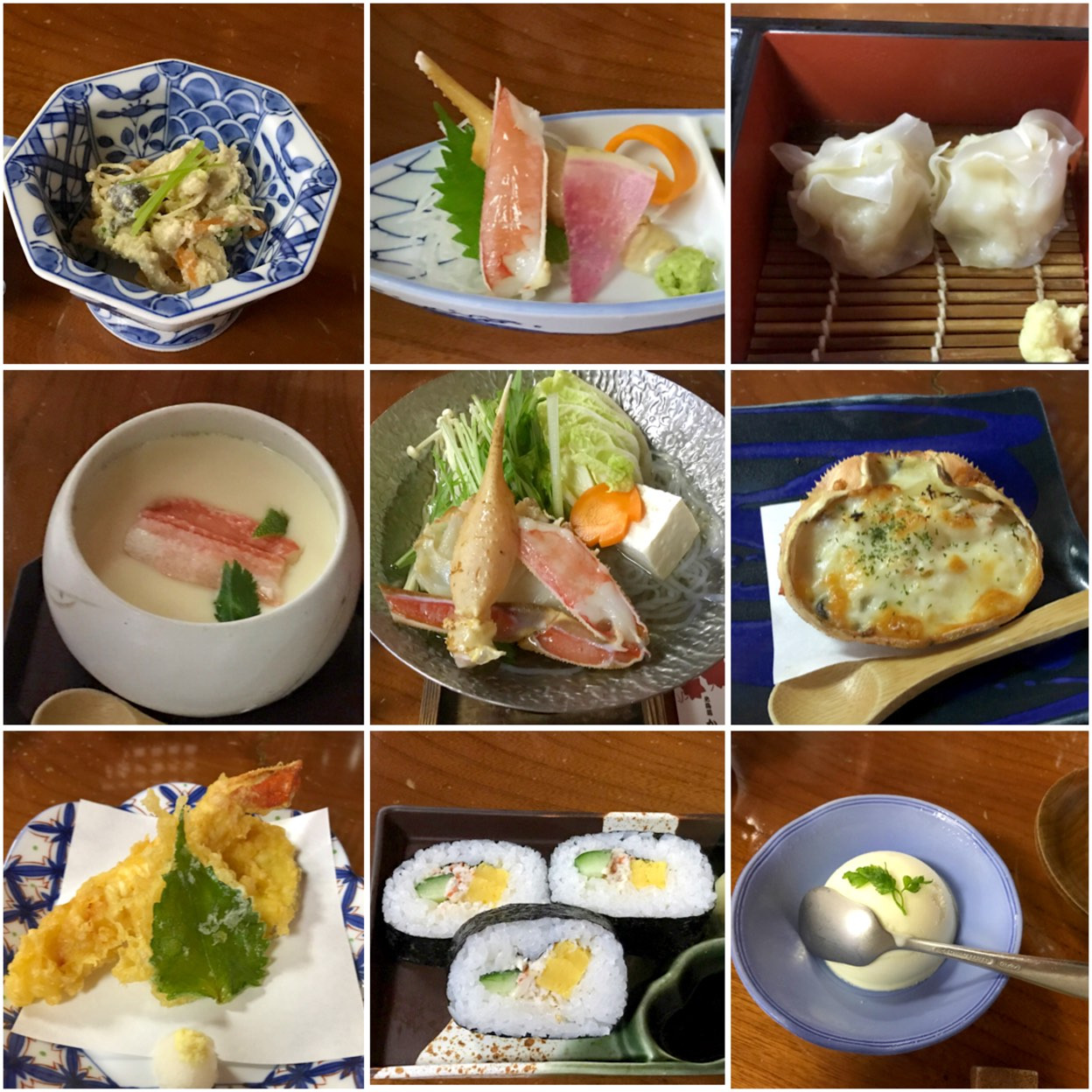 - 게 가이세키 코스 (9종): 8,000엔~ - 게 전골, 게 회, 게 찜