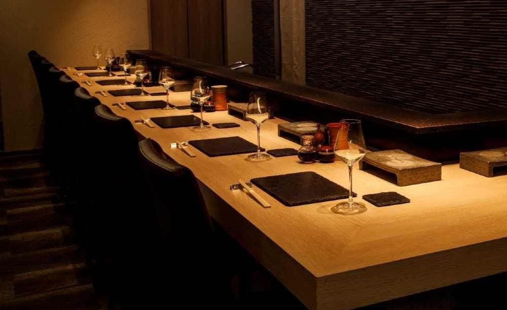 건물과 인테리어 빌딩 2층에 위치하며, 입구는 작고 겸손합니다. 계단을 올라가면 모던한 일본식 인테리어의 공간이 나타납니다. 간접조명으로 은은하게 밝히고, 목재와 대나무를 활용한 차분한 분위기가 특징입니다.