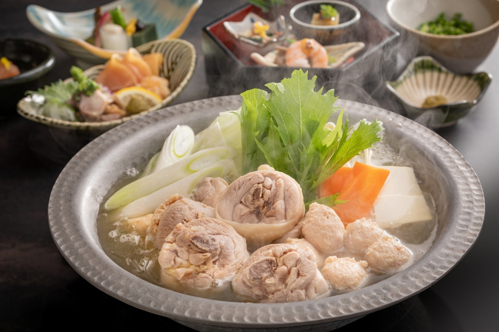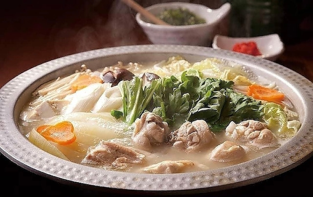 미즈타키(水炊き)는 후쿠오카 하카타의 대표 향토 요리로, 닭고기를 물에 푹 끓여 만든 백탁한 육수에 채소와 닭고기를 넣어 먹는 전골 요리입니다! 🐔