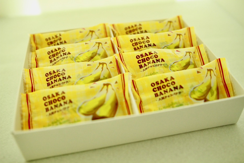 도쿄 바나나의 오사카 버전인 오사카 바나나는 오사카를 대표하는 과자 기념품이에요. 부드러운 스펀지 케이크 안에 바나나 크림이 가득 들어있는 구조는 비슷하지만, 오사카 바나나는 오사카성이나 다코야키 같은 오사카 명물이 패키지에 그려져 있어요.