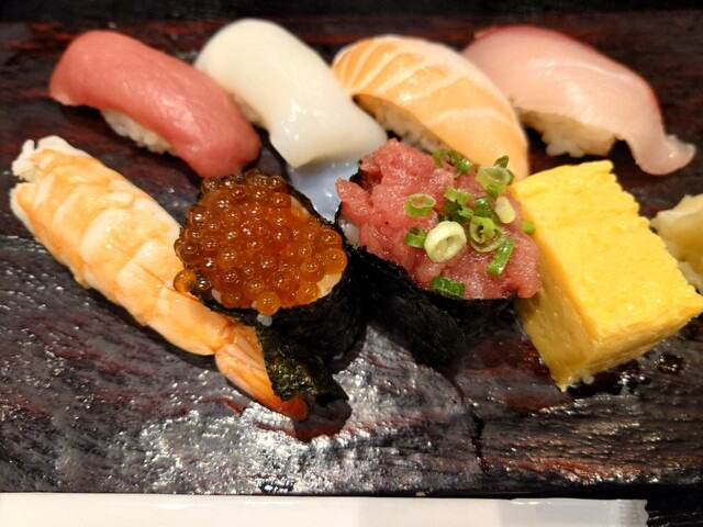 대표 메뉴 혼마구로 (참치) 삼종 세트가 대표 메뉴로, 직접 경매받은 참치를 사용해 신선도가 뛰어나요. 오토로는 기름기가 풍부하면서도 깔끔한 맛이랍니다. 네기토로 (참치 다진 것과 파) 군칸도 고소하고 부드러워 인기가 많아요. 우니 이쿠라동(성게알과 연어알 덮밥)은 비주얼도 화려하고 맛도 훌륭하며, 아부리 사몬(불에 살짝 구운 연어)도 고소한 풍미가 일품이에요.