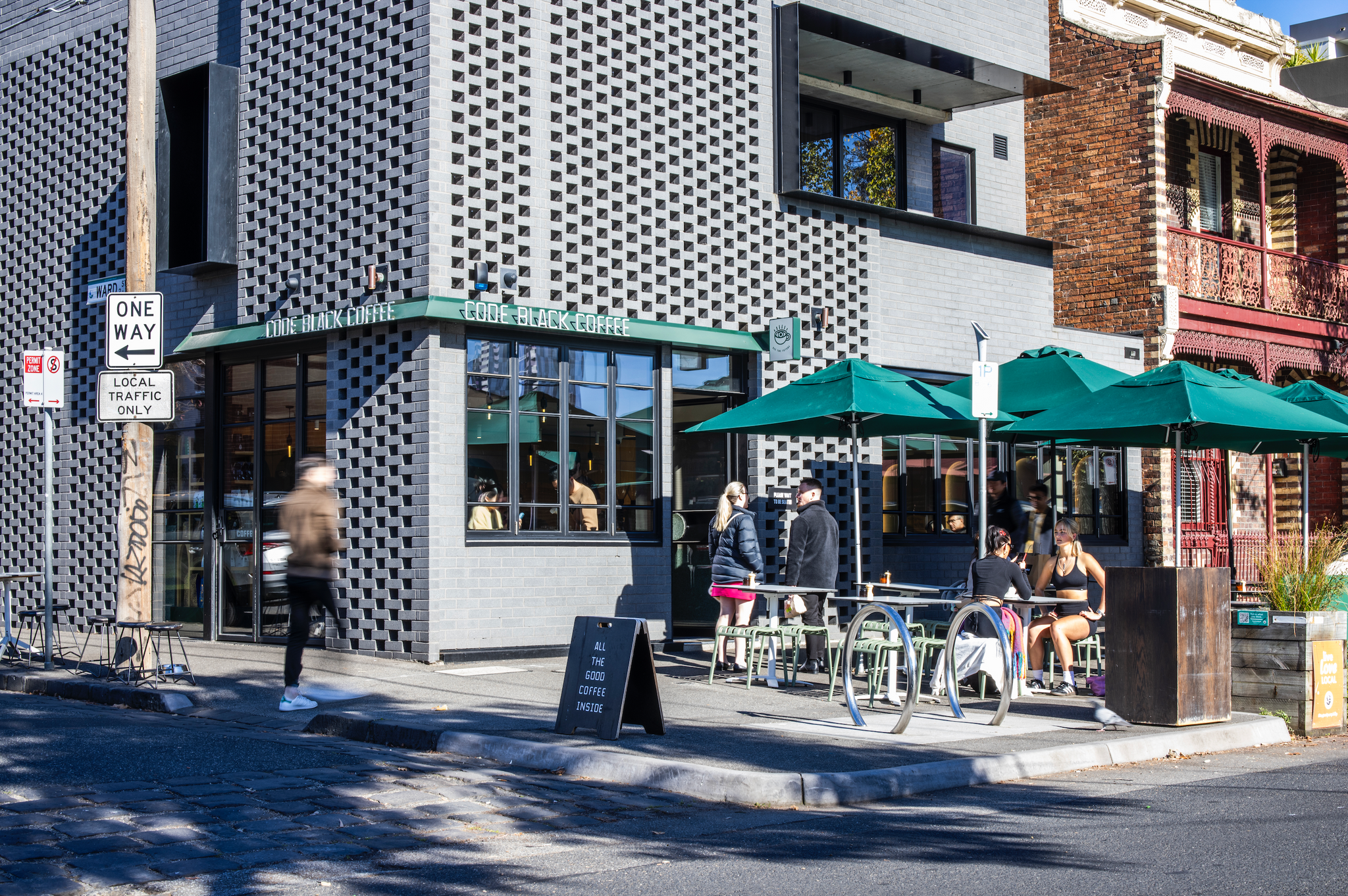 코드 블랙은 멜버른 전역에 여러 지점을 운영하는 스페셜티 커피 로스터리로, 각 로케이션마다 주변 지역의 특성을 반영한 독특한 공간 디자인이 특징입니다. 노스 멜버른 매장은 브런스윅 HQ의 여동생 격으로, 건물의 과거 역사(정비소 창고)에서 영감을 받은 인더스트리얼 시크 개조가 인상적입니다.