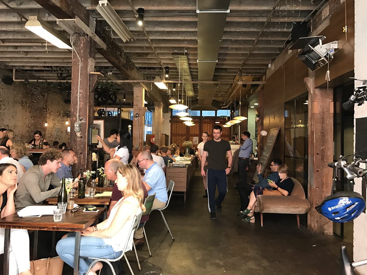 - 무디한 조명, 노출된 빔, 천장에 걸린 오래된 휠이 만드는 쿨하고 인더스트리얼한 분위기는 멜버른이 잘하는 '히든 젬' 느낌 그 자체