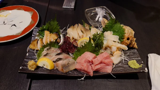 하코다테 (函館): ¥1,500 (2인분) - 근해산 사시미 6종 모리아와세. 거의 모든 손님이 주문하는 인기 메뉴!