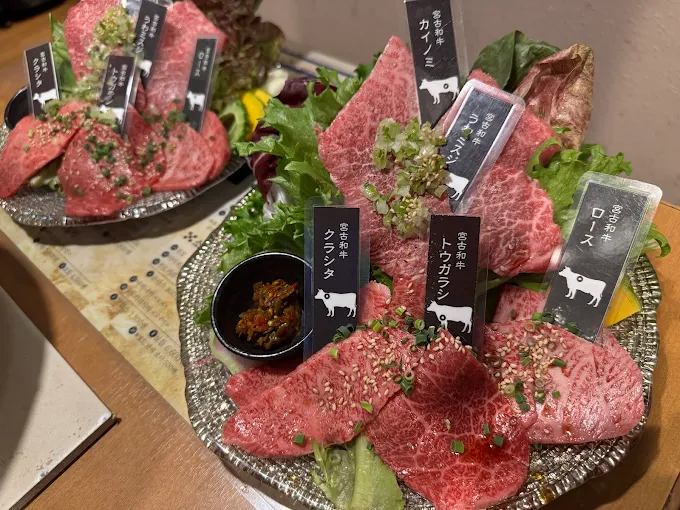 나카오도 미야코규를 일두매입하며, 그날 최상의 상태로 다양한 부위를 제공해요. 가게 내부는 세련된 모던 스타일로 꾸며져 있고, 반 개인실로 구분된 좌석들이 있어서 데이트나 가족 모임, 특별한 기념일에도 완벽한 곳이에요.